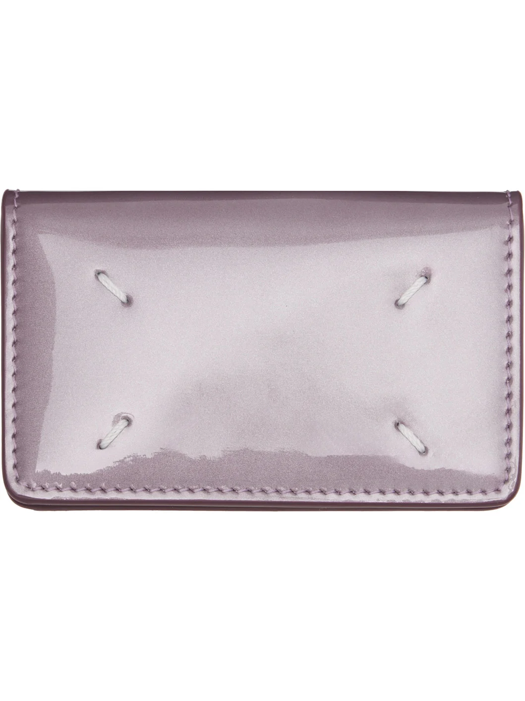 Patent calfskin card holder. · Stitching at face · Card slot at back face · Press-stud closure · Two card slots · Two note slots · Coin compartment · Canvas lining · Buffed leather interior · H2.5" x W4.25" x D1.25" Supplier color: Dusty Pink Calf leather. Made in Italy 261168M163000