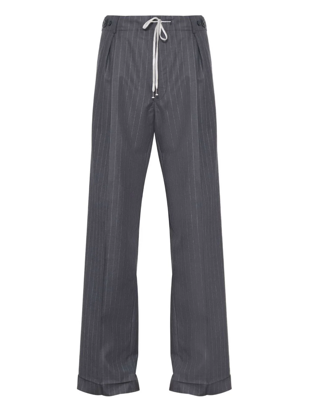 pinstripe pleated trousers Highlights - Grey - Pinstripe pattern - Pleated front - Drawstring fastening - Straight leg Made in Italy Composition Wool 100% Washing instructions Read Manufacturer Guidelines