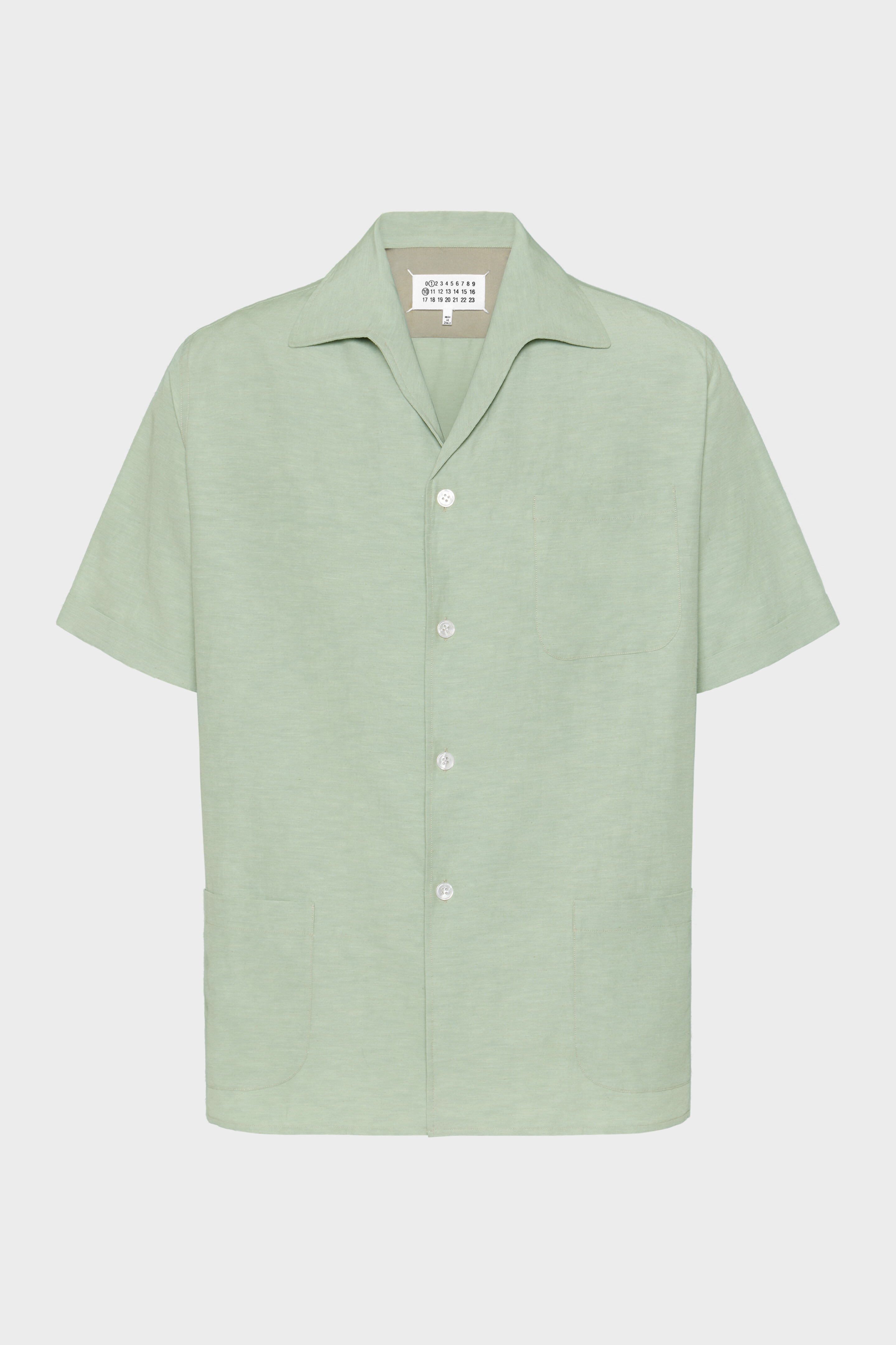 The Pocket Shirt features multi pockets, with short sleeves and flat collar, for a utilitarian aesthetic. It is finished with a buttoned placket and straight hem. Maison Margiela's signature, the four stitches, appear at the back; the opposite of a label. Product Details Item ID S50DR0011M35450700 Primary Fabric: 40% Linen 26% Cotton 17% Viscose-Rayon 17% Acetate Linen cotton acetate shirt Button closure Patch pockets Short sleeves Four stitches at the back Made in Italy