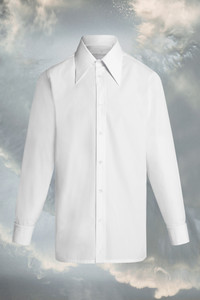 In cotton, the pointed collar shirt features mother of pearl buttons at the front and turned-up cuffs. It's designed with a straight hem and side slits. Maison Margiela’s signature, the Four stitches, appear at the back; the opposite of a label. Product Details Item ID S67DT0003S43001100 COED Fall Winter 2023 Composition: 100% Cotton Exagerated collar Double fit Buttonhole under the collar for a reversed fit Mother of pearl button closure Turned up mother of pearl button closure cuffs Side slits Four stitches at the back Made in Italy