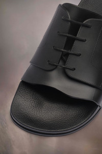 The pool slides in rubber feature a layered lace-up front detail demonstrating the Maison's off-kilter approach. The numeric logo is imprinted into the sole. Product Details Item ID S57WX0080P5411T8008 Upper: 100% polyurethane Lining: 76% nylon 24% elastane Inside: 100% polyurethane Sole: 100% rubber Pool slides in rubber Lace-up Made in Italy
