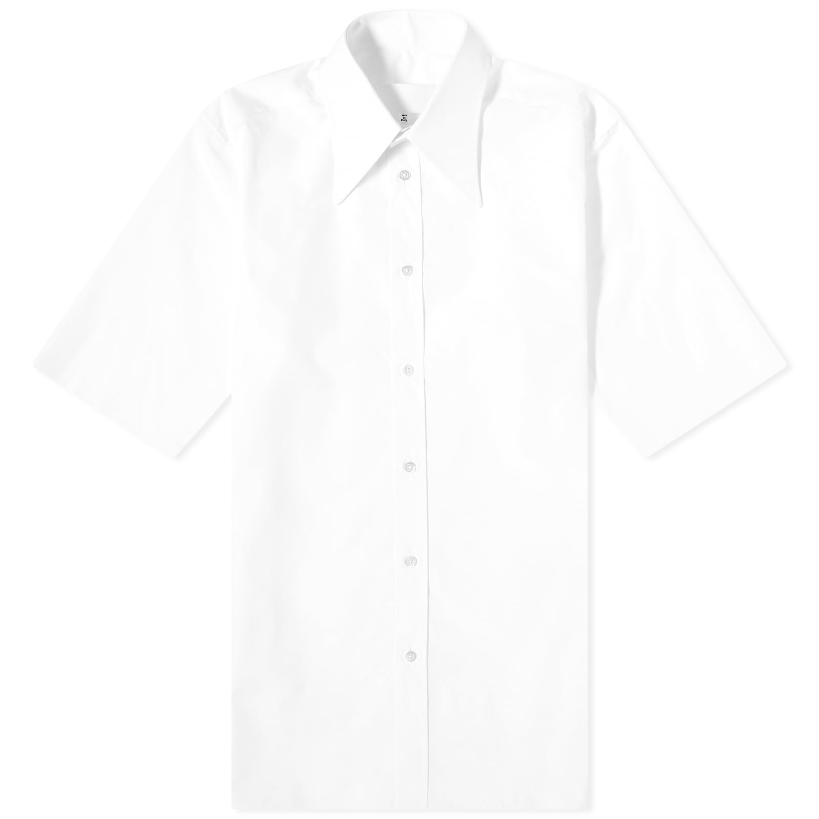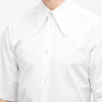 Maison Margiela steps slightly away from its usual avant-garde design with this short sleeve shirt. Crafted in smooth cotton poplin, it's updated with side slits and finished with a standout pointed collar. Not forgetting the signature tack stitch detail at the back, this shirt is a versatile pick for any outfit rotation. - 100% Cotton Poplin - Exaggerated Pointed Collar - Side Slits At Hem - Button Closure - Embroidered Branding At Back - Made in Italy
