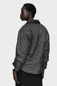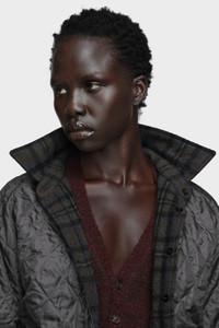 This reversible padded shirt-jacket is constructed with quilted panels that ripple across the surface. The checked wool collar evokes rural archetypes, while the padded volume offers both warmth and shape. Maison Margiela’s signature, the four stitches, appear at the back; the opposite of a label. Product Details Item ID S51DT0024MTN117860 Primary fabric: 100% virgin wool Lining: 100% polyester Wadding: 100% cotton Quilted overshirt with classic collar and curved hem Diamond-stitched outer with padded structure Button closure through the front Ruched sleeves with contrast cuffs Checked flannel lining at the collar Four stitches at the back Made in Italy