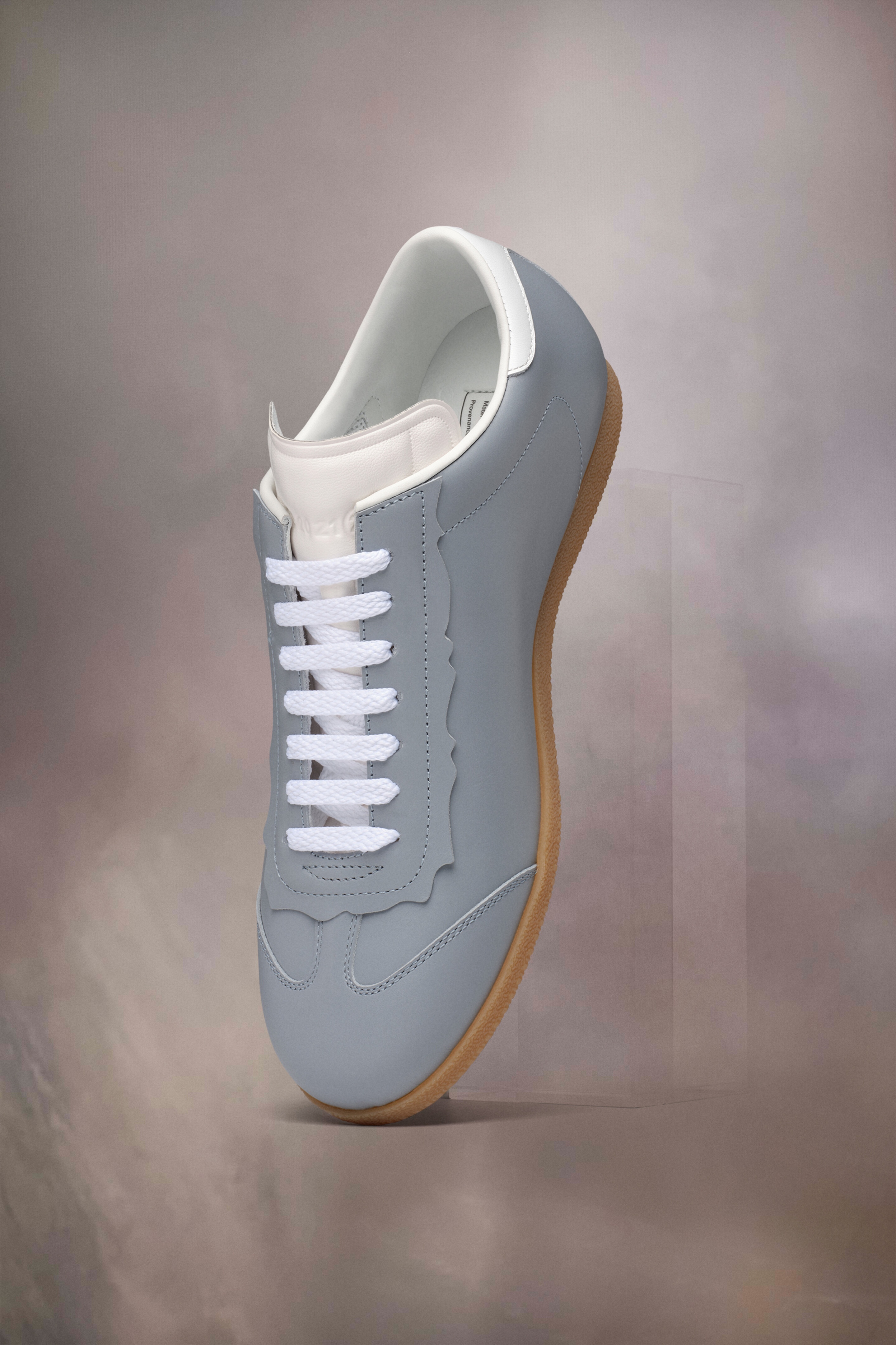 In leather, the sneakers follow a minimal silhouette and display the numeric logo on the tongue. The back features a single white stitch showing the hand of Maison Margiela. Recicla pieces carry a unique Recicla label denoting its limited edition, provenance and period – an illustration of the restorative power of heritage attributes and articles imbued with the soul of history, resonating the grammar of today. Label in image is an example only. Product Details Item ID S57WS0485P5392T8145 Upper: 100% calf leather Lining: 100% polyester Sole: 100% rubber Full grain calf leather Recicla sneakers Lace-up Décortiqué lasered details Logo label on the tab White stitching at the back All-over logo insole Made in Italy A digital certificate provided by the Aura Blockchain Consortium guarantees the authenticity of this product. Discover more on auraluxuryblockchain.com/#about