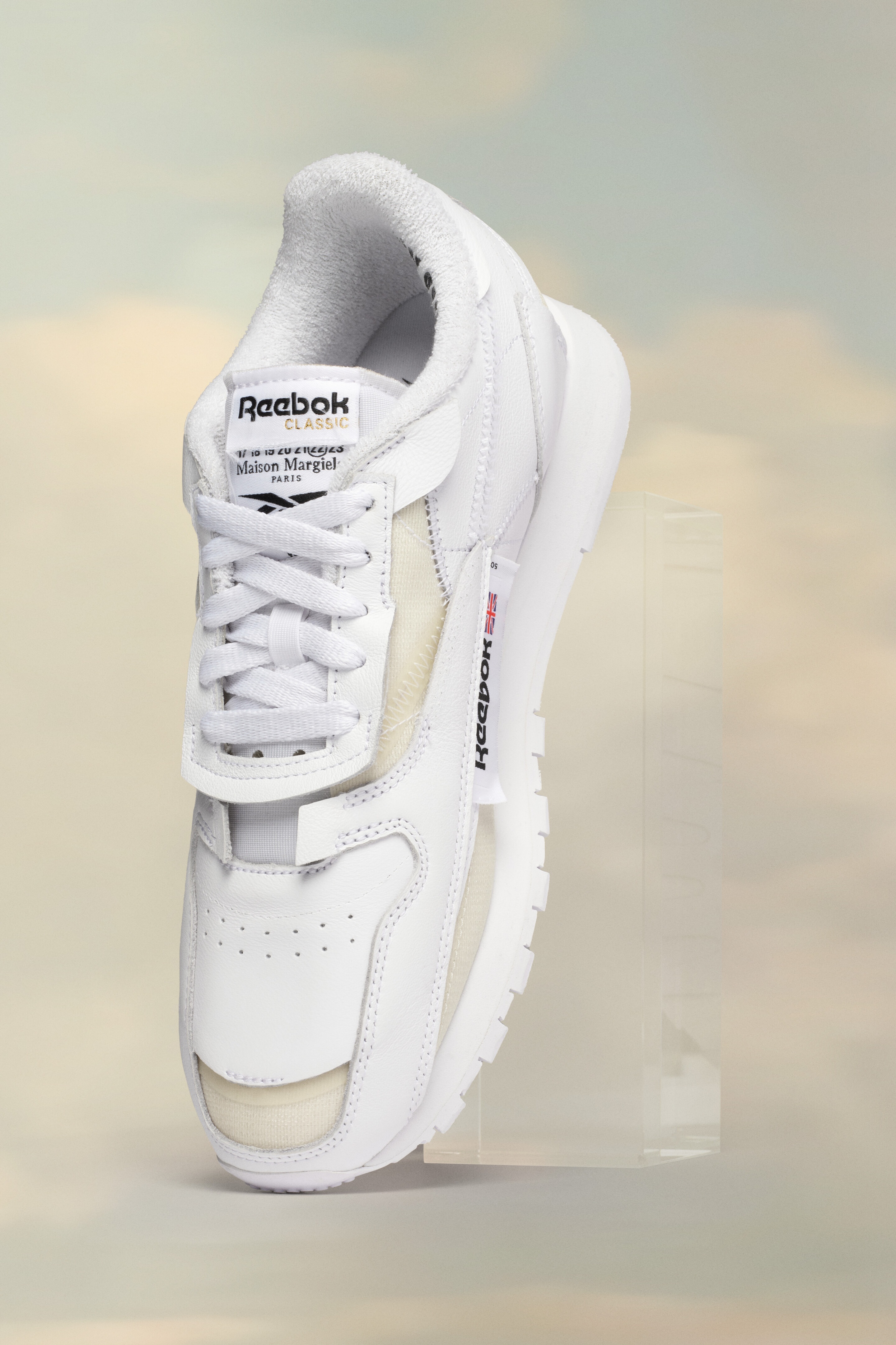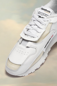 For the latest chapter in the ongoing collaboration, a series of Reebok classics are interpreted through the Maison's signature concept, The Memory Of. The technique evokes the impression of familiar elements through the deconstruction of garments and accessories. It is the visual recollection of an object or feeling that is no longer materially visible, but palpable through an outline or suggestion: the memory of something that once was.