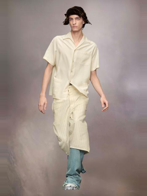 With short sleeves and a flat collar, the shirt comes in striped acetate cotton-linen. It has three roomy pockets and a straight-edge hem. Maison Margiela's signature, the four stitches, appear at the back; the opposite of a label. Product Details Item ID S50DR0009M35267900 Primary Fabric: 54% Acetate 37% Cotton 9% Linen Cotton shirt Button closure Patch pockets Short sleeves Four stitches at the back Made in Italy Model is 188 cm tall and wears a size 46.