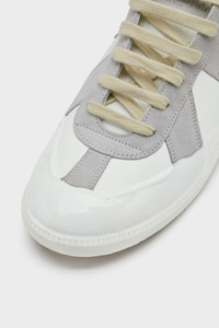 The Replica Glow sneakers are crafted in smooth calfskin and suede, finished with luminescent treatment at the base that glows in complete darkness. The Maison's iconic Replica sneakers are inspired by Austrian sports shoes from the seventies. Details on the Replica pairs are continually reworked in line with the season's inspirations. Product Details Item ID S57WS0517P7450HB122 Upper: 100% Calf Leather Contrast: 100% Calf Leather Lining: 100% Cotton Contrast: 100% Calf Leather Inside: 100% Calf Leather Sole: 100% Rubber Low-top sneakers in calf leather and suede Paneled upper with lace-up fastening Luminescent base glows in darkness Made in Italy