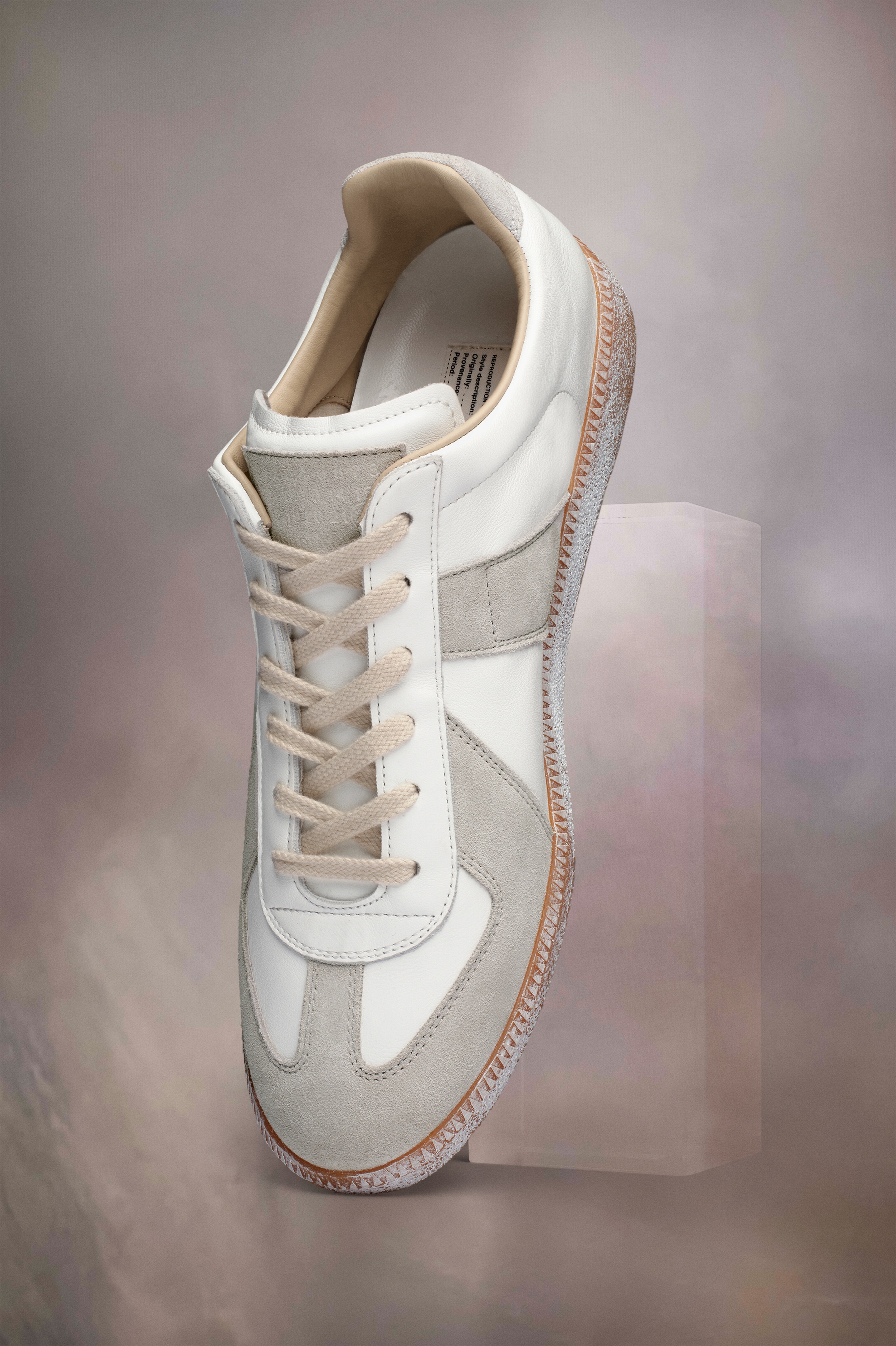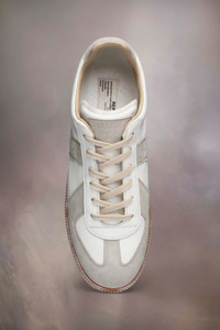 The Replica sneakers in vintage nappa suede with the iconic stitch mark at the back. The Maison's iconic Replica sneakers are inspired by Austrian sports shoes from the seventies. Details on the Replica pairs are continually reworked in line with the season's inspirations.