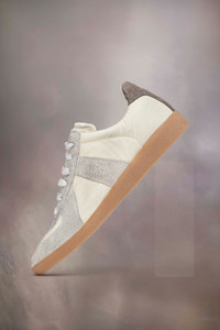 The Replica sneakers in dirty treatment nylon and hairy suede are supported by a classic rubber sole. The Maison's iconic Replica model is inspired by Austrian sports shoes from the seventies. Details on the Replica pairs are continually reworked in line with the season's inspirations. Maison Margiela's signature white stitch appears at the back. Product Details Item ID S57WS0513P8170HA839