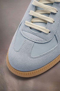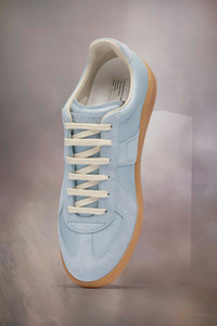 The Replica sneakers in nappa leather and suede with a honey sole. The Maison's iconic Replica sneakers are inspired by Austrian sports shoes from the seventies. Details on the Replica pairs are continually reworked in line with the season's inspirations.