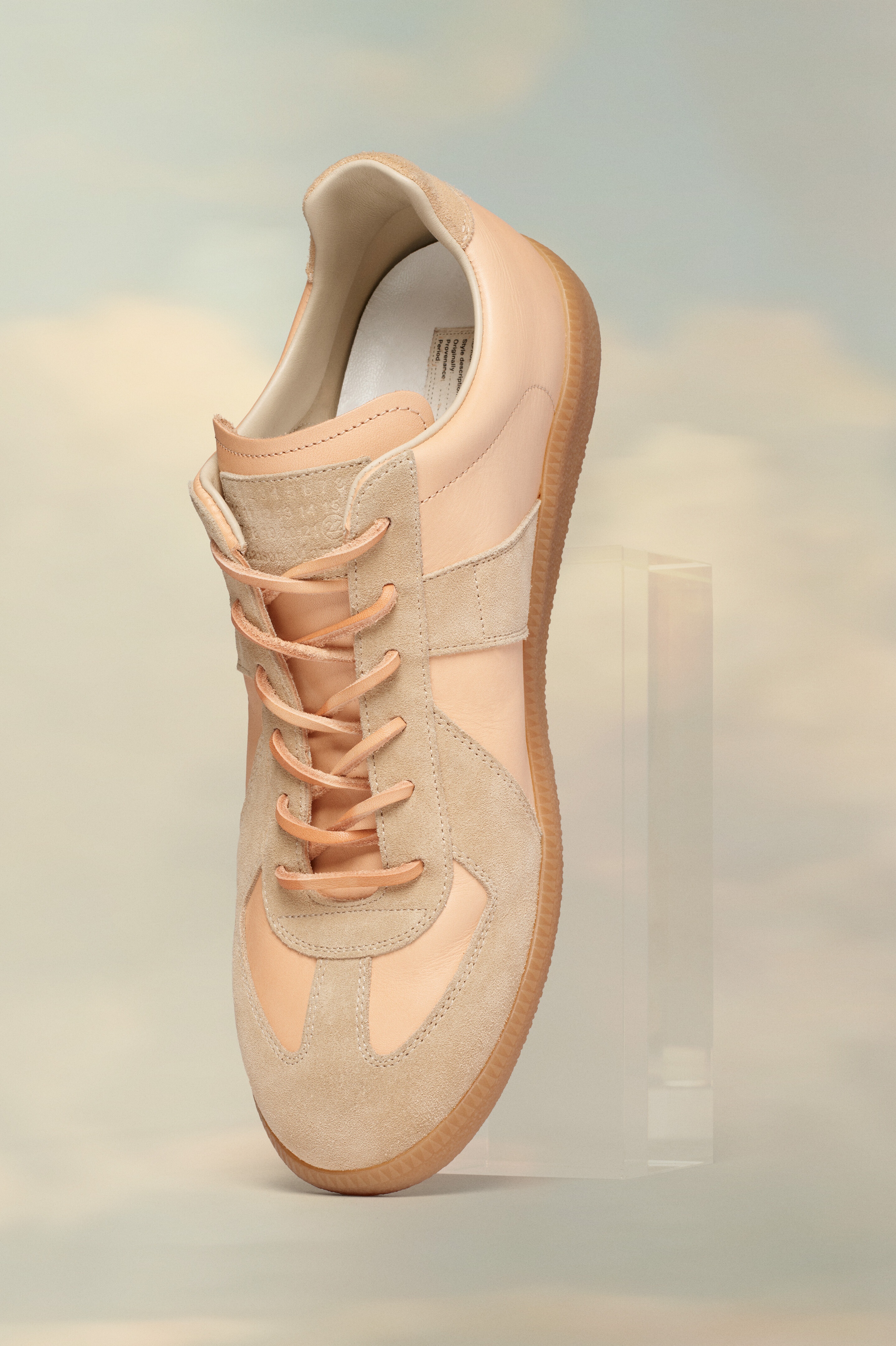 In natural vegetable leather, the Replica sneakers feature the numerical logo on the tongue and iconic stitch mark at the back. The Maison's famous Replica is inspired by men's sports shoes from the Austrian province in the seventies. Details on the Replica pairs are continually reworked in line with the season's inspirations. Product Details Item ID S57WS0408P4306T2059 Upper: 100% Calf leather Contrast: 100% Calf leather Lining: 100% Cotton Sole: 100% Rubber Leather laces Logo label on the tab White stitching at the back Internal Replica label Internal elastic All-over logo insole Leather part: Gently rub using a microfiber cloth with softner to clean Suede: gently brush with a delicate brush Made in Italy A digital certificate provided by the Aura Blockchain Consortium guarantees the authenticity of this product. Discover more on auraluxuryblockchain.com/#about