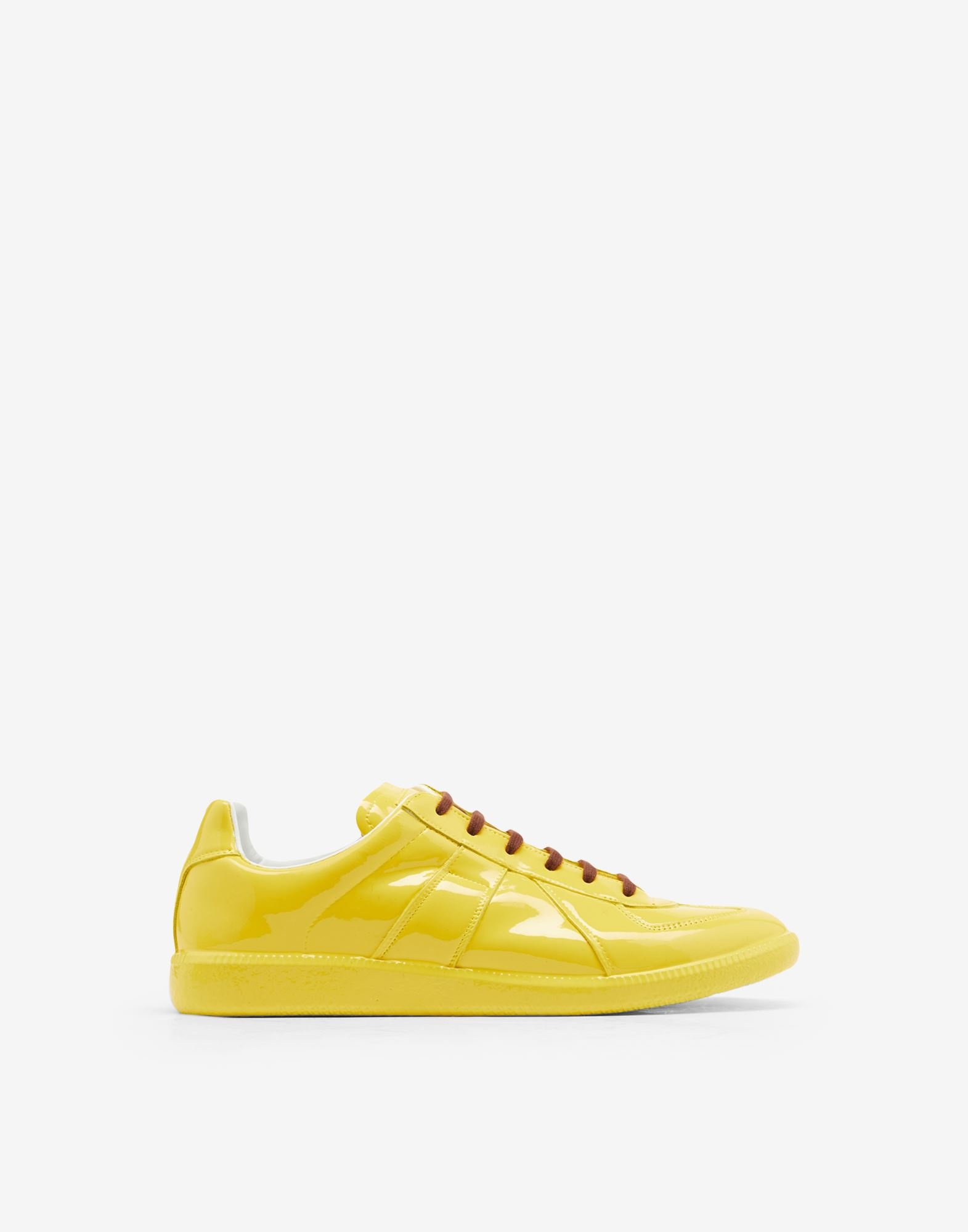 Replica sneakers in a shiny rubber treatment with the numerical logo on the tongue and iconic stitch mark at the back. The Maison's famous Replica sneakers are inspired by men's sports shoes from the Austrian province in the seventies. Details on the Replica pairs are continually reworked in line with the season's inspirations. Made in Italy. Item details 100% Bovine leather Rubbery effect Brand logo Laces Round toeline Fully lined Rubber sole