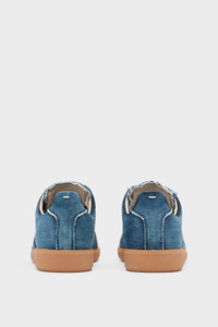 The Replica Denim Sun-Faded recall textiles naturally worn by time. Crafted in raw-edge denim, these sneakers are defined by exposed threads that trace the outline of each seam. The Maison's iconic Replica sneakers are inspired by Austrian sports shoes from the seventies. Details on the Replica pairs are continually reworked in line with the season's inspirations. Product Details Item ID S97WS0089P7578T6182 Upper: 100% Cotton Contrast: 100% Calf Leather Lining: 100% Cotton Inside: 100% Calf Leather Sole: 100% Rubber Denim sneakers Panel detailing Textured gum sole White stitching at the back Made in Italy