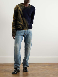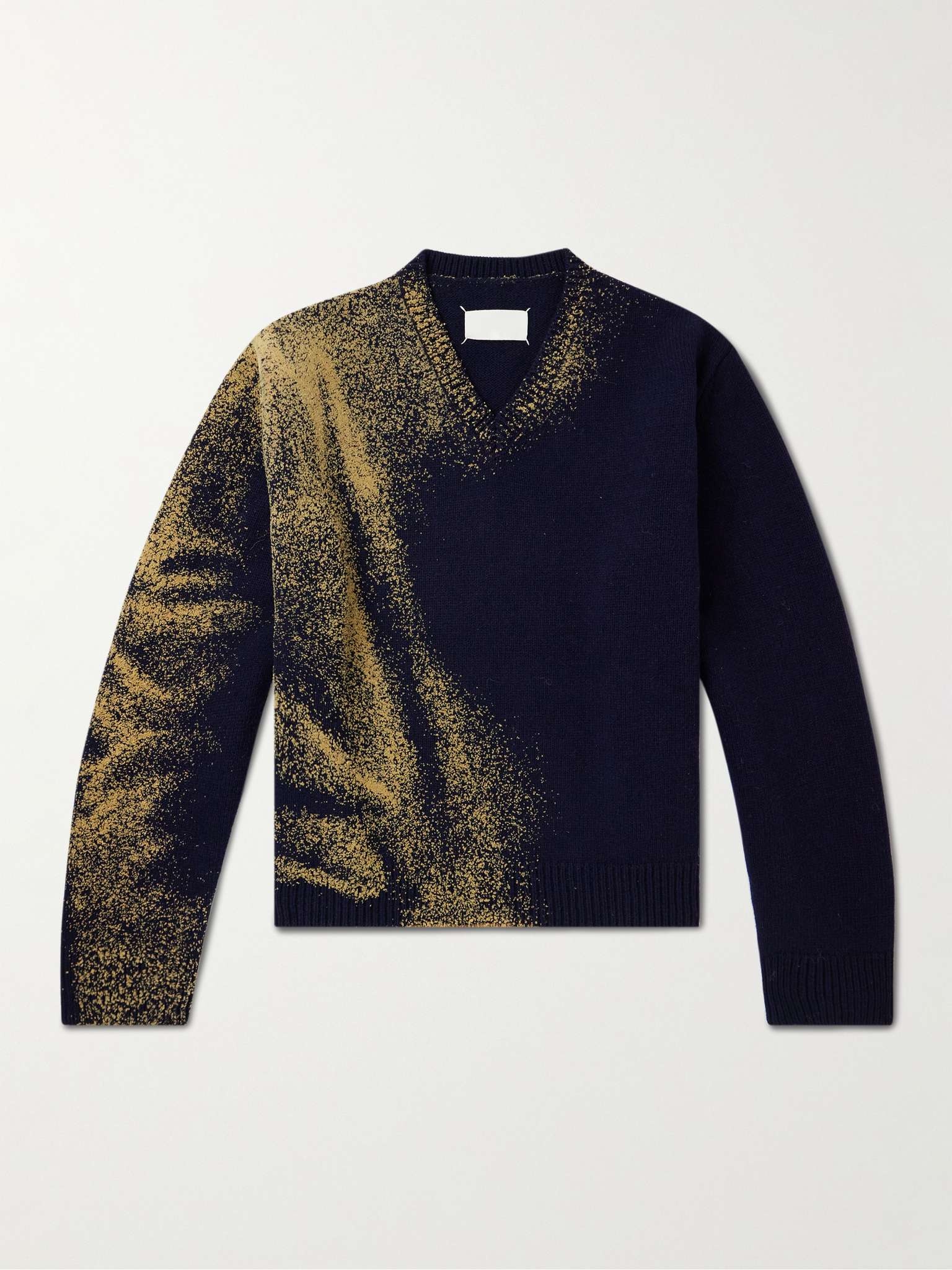 Maison Margiela's sweater is treated with the house's unique 'Sandstorm' effect. It's knitted from wool and has dropped shoulder seams and the signature four stitches at the back. Size & Fit - Model wears a size larger to achieve a looser fit - Dropped shoulder seam - Mid-weight knit - Model is shown wearing a M - Model measures: chest 36"/ 92cm, height 6'2"/ 188cm Details & Care - Yellow and navy wool - 100% wool - Dry clean