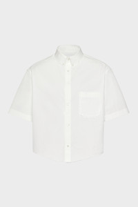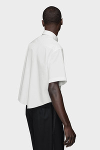 This cotton shirt is shaped for simplicity, with a cropped length, raw edge and a reverse Decortique chest pocket. The exposed finish interrupts the clean lines, revealing a glimpse of the garment’s construction. Maison Margiela’s signature, the four stitches, appear at the back; the opposite of a label. Product Details Item ID S50DR0012S43001100 Primary fabric: 100% cotton Short-sleeved shirt in cotton with button-down collar Chest patch pocket and button front closure Raw-cut hem Four stitches at the back Made in Italy