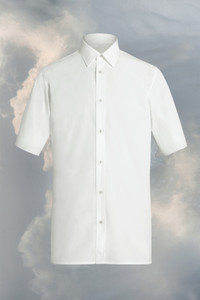 In cotton, the shirt has short raw cut sleeves. With a classic collar, it features mother of pearl buttons down the front. Maison Margiela’s signature, the Four stitches, appear at the back; the opposite of a label. Product Details Item ID S67DR0003S43001100 Composition: 100% Cotton Short-sleeved shirt Raw cut sleeves Mother of pearl buttons Four stitches at the back Made in Italy