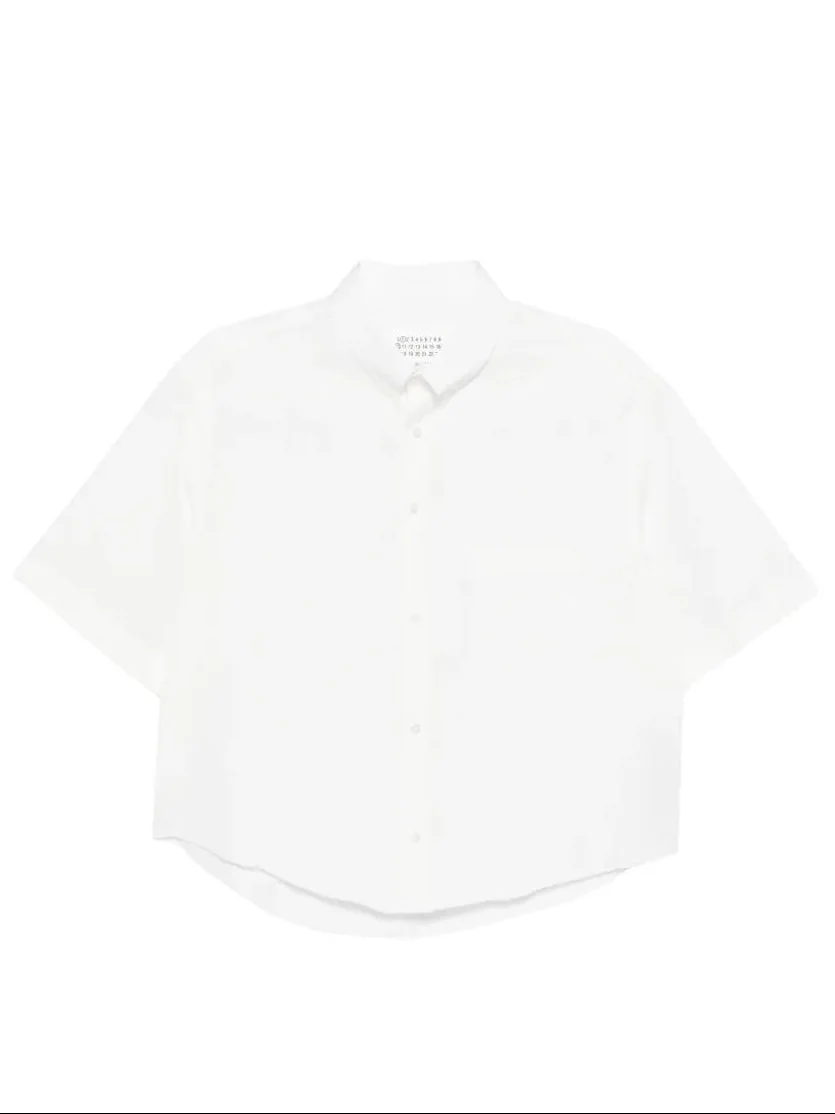 Short-Sleeved Shirt in Off White from Maison Margiela Highlights - off white - classic collar - short sleeves - front button closure - cropped hem - boxy fit Made in Italy Designer ID: S51DR0004S43001102 Materials Primary Fabric: 100% Cotton
