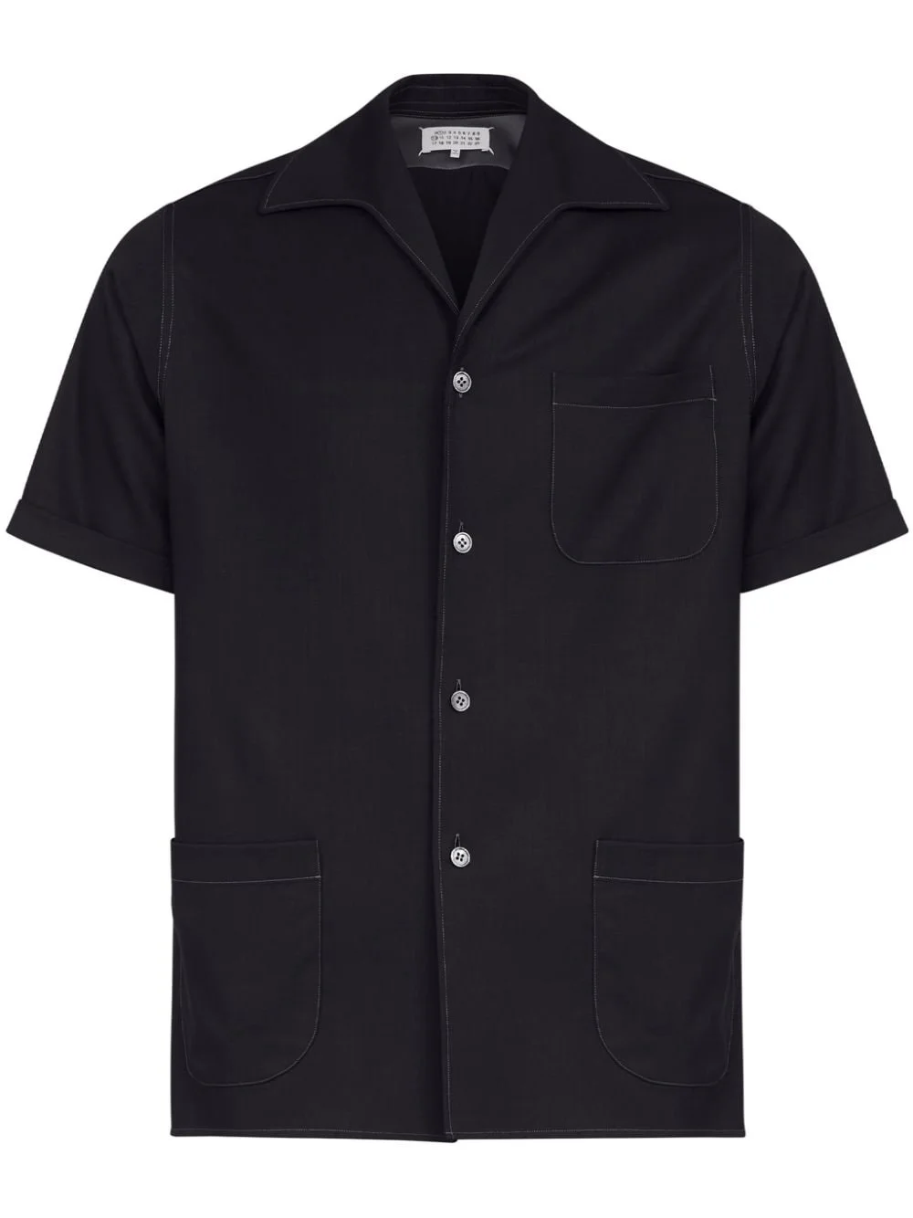 short-sleeve wool shirt Highlights - Black - Wool - Notched collar - Signature four-stitch logo - Front button fastening - Short sleeves - Chest patch pocket - Straight hem Made in Italy Composition Wool 100%
