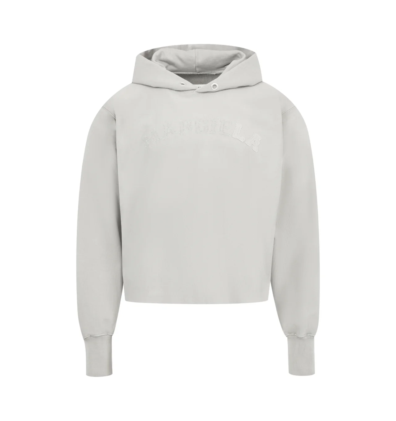 MAISON MARGIELA Signature Sweatshirt featuring cropped hoodie in loopback cotton jersey, dropped shoulders and long ribbed cuffs, ‘MARGIELA’ embroidery at the front, raw-edge hem for a deconstructed finish, double-layered hood with eyelet detail and four stitches at the back. 100% cotton. Made in Italy. DESIGNER STYLE ID: S51GU0139-S25520 COLOR: 803 GREY