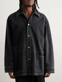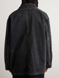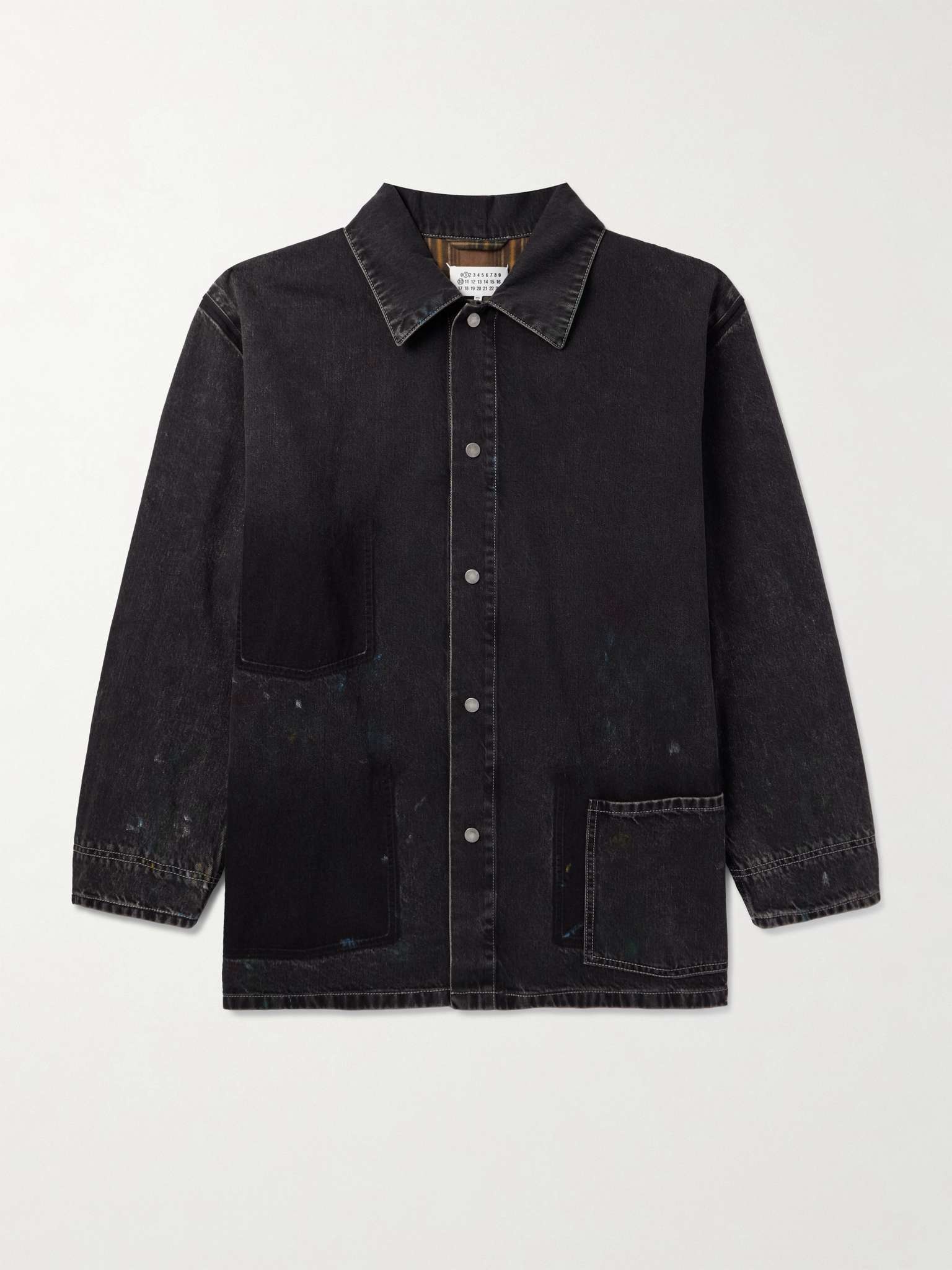 Maison Margiela's oversized jacket looks like the kind of style you'd find in an artist's studio, colourful paint splatters and all. Fitted with a tartan lining, it's been made in Italy from black denim and fastens with large snaps. Size & Fit - Fits true to size. Take your normal size - Designed for an oversized fit - Dropped shoulder seam - Mid-weight, non-stretchy fabric - Model is shown wearing an IT 48 - Model measures: chest 38"/ 96cm, height 6'1"/ 185cm Details & Care - Multicoloured denim - Snap fastenings - 100% cotton - Machine wash