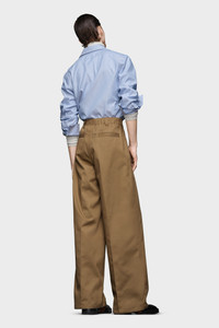 With a high-waist and pleats, the wide skater chino trousers feature the Margiela hook. The back is elasticated, with side and back pockets. Maison Margiela's signature, the Four stitches, appear at the back; the opposite of a label. Product Details Item ID S50KA0652S54042114 Primary Fabric: 60% Polyester 40% Cotton Pocket Lining: 65% Polyester 35% Cotton Straight-leg trousers in a poly-cotton blend Pressed creases Belt loops Four stitches at the back Made in Italy Model is 6'2" tall and wears a size 46.
