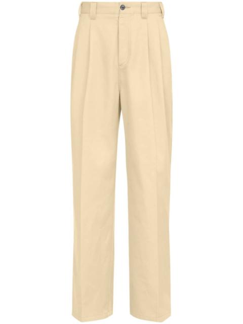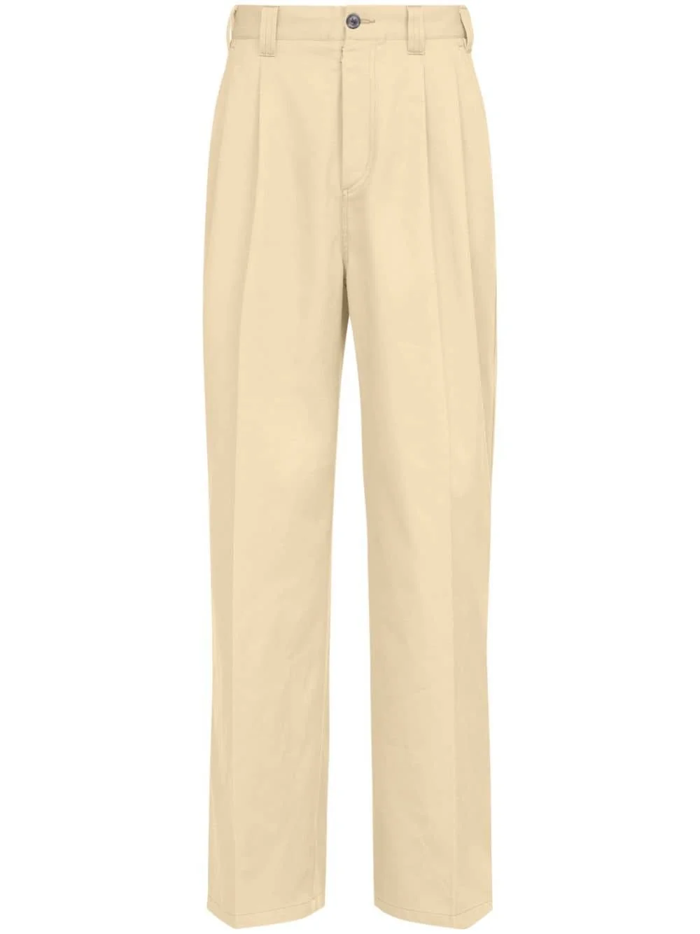 Skater chino trousers Highlights - Beige - Cotton blend - Signature four-stitch logo - Pleat detailing - Belt loops - Rear elasticated waistband - Front button and zip fastening - Two side slit pockets - Two rear welt pockets - Wide leg - Long length Made in Italy Composition Polyester 60%, Cotton 40% SIZE & FIT Measurement INSIDE LEG 32.51 in(82.6 cm) Hem Width 25 in(63.5 cm) FRONT RISE 14.01 in(35.6 cm) WAIST 30.98 in(78.7 cm) HIPS 42 in(106.7 cm)