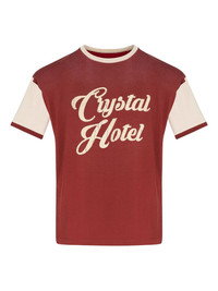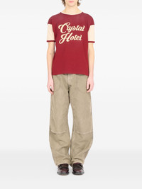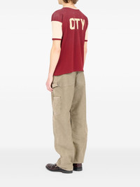 slogan-print T-shirt Highlights - Burgundy red - Contrasting sleeves - Round neckline - Short sleeves Made in Italy Composition Viscose 53%, Cotton 47% Washing instructions Read Manufacturer Guidelines