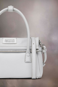 The 5AC East West, crafted from goat leather, takes Maison Margiela’s signature 5AC handbag and infuses an Informal Formality mood. It is accented with the logo label at the front. The iconic 5AC line takes its name from the French word ‘sac’ (bag). The East West variation is the latest addition of subverted modern classics, revisited in an elongated size with more volume. Modelled on a men’s briefcase, with a horizontal shape that inspired its name, the bag can be worn by hand, over the shoulder or crossbody. The style continues to explore the Maison’s Anonymity of the lining concept to reveal its internal structure. Product Details Item ID SB1WD0034P5348T8058 Body: 100% Goat Leather Application: 100% Calf Leather Lining: 100% Polyester Inside: 100% Goat Leather Metallic hardware Handbag in goat leather Handle Detachable and adjustable leather shoulder strap Zip closure Logo label on the front Four stitches on the back Logo stamp inside Inside pocket Metal feet Clean with a gentle leather cleanser Made in Italy