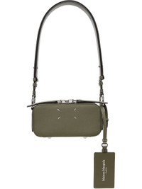 Saffiano calfskin messenger bag. · Adjustable and detachable crossbody strap · Detachable ID lanyard · Stitching at face · Two-way zip closure · Card slot at interior · Twill lining · H5" x W9" x D3.75" Supplier color: Khaki Calfskin. Made in Italy 252168M170010