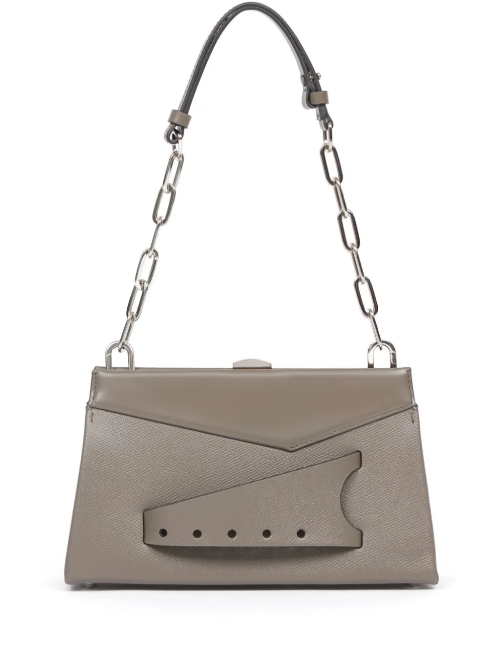 small Snatched shoulder bag Highlights - Dark grey - Calf leather - Magnetic fastening - Leather and chain-link shoulder strap - Signature four-stitch logo - Perforated detailing - Main compartment - Internal slip pocket - Metal feet - This piece comes complete with a protective dust bag. Made in Italy Composition Outer: Calf Leather 100%