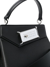 Snatched mini tote bag A staple of the brand, Maison Margiela's 5AC tote bag is reinvented every season. For AW22, the French house presents this modern mini-sized iteration of the design. It is made of calf leather and completed with a distinct front handle. Highlights - Black - Calf leather - Asymmetric design - Perforated detailing - Signature numbers motif - Logo patch to the front - Trapeze body - Clip-lock fastening - Detachable shoulder strap - Single circular top handle - Front handle - Main compartment Made In Italy Composition Lining: Polyester 100% Outer: Calf Leather 100%, Brass 100% SIZE & FIT Model measurements Height 5 ft 10 in(1.77 m) Bust/Chest 32.28 in(82 cm) Hips 35.03 in(89 cm) Waist 25.19 in(64 cm) Measurement DEPTH 4.33 in(11 cm) HANDLE 2.75 in(7 cm) HEIGHT 6.69 in(17 cm) STRAP 22.83 in(58 cm) WIDTH 7.87 in(20 cm)