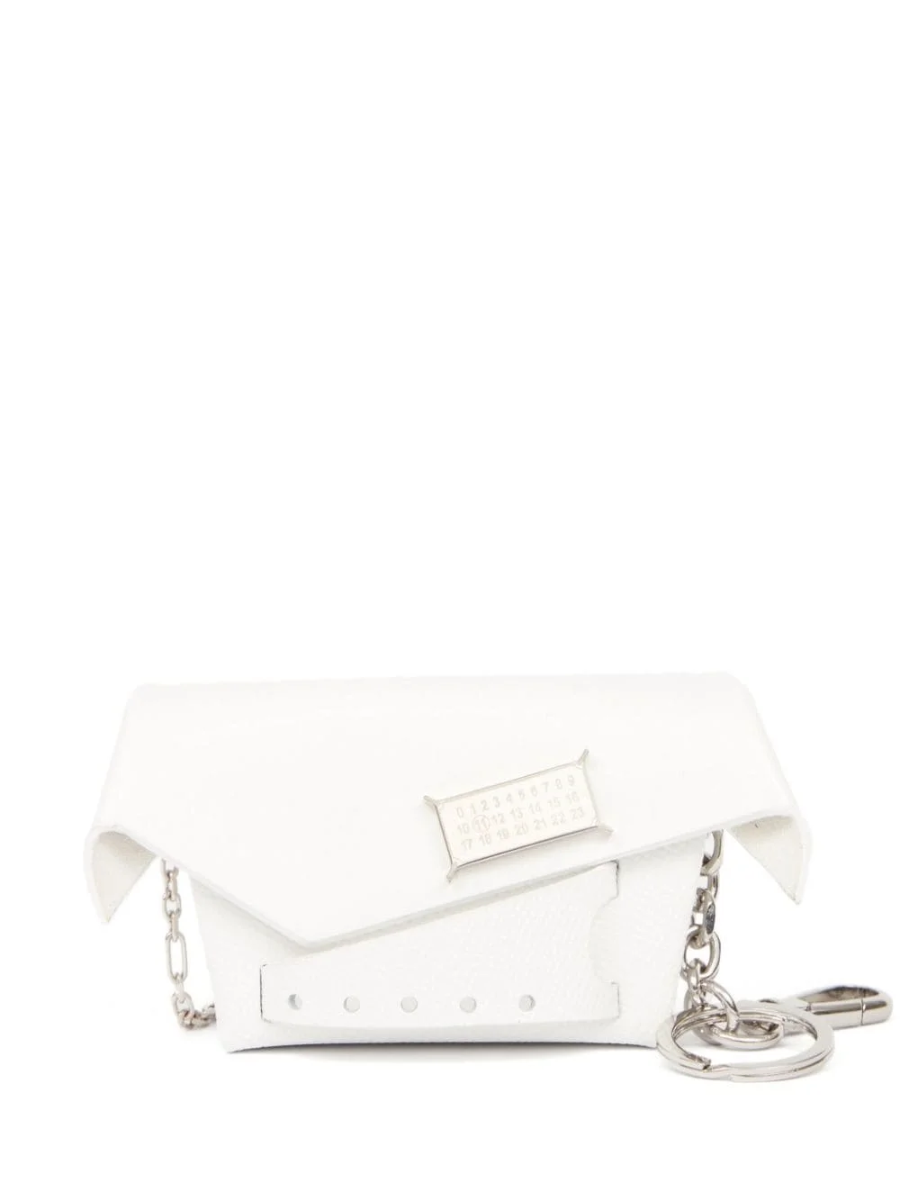 Snatched Classique cross body bag Highlights - Chalk white - Calf leather - Grained texture - Tonal logo plaque - Signature numbers motif - Silver-tone hardware - Foldover top - Twist-lock fastening - Detachable chain-link shoulder strap - Internal logo stamp - Main compartment Made in Italy Composition Outer: Calf Leather 100% SIZE & FIT Measurement DEPTH 1.37 in(3.5 cm) HEIGHT 2.75 in(7 cm) STRAP 15.35 in(39 cm) WIDTH 5.11 in(13 cm)