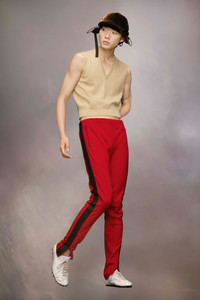 The trousers in a cotton blend feature a tied waist and pin tucks. They have a sportswear-inspired contrast stripe down the side, with zips at the hem to alter the silhouette. Margiela's signature, the four stitches, appear at the back; the opposite of a label. Product Details Item ID S50KA0675S22460314 Primary Fabric: 55% Polyester 45% Cotton Pocket Lining: 100% Polyamide-Nylon Cotton poly sweatpant with side stripe Elasticated regular waist Skinny legs Zipped bottom Four stitches at the back Made in Italy Model is 188 cm tall and wears a size 46.