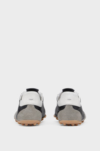 Mit einer Vintage-Behandlung und einer ubertriebenen Haptik legen die Sprinter das Design der Stollenschuhe aus den 1960er-Jahren neu auf. Dieses Modell wird aus Rau- und Kalbsleder gefertigt, mit einer genoppten Sohle versehen und prasentiert sich mit einem Zahlendesign, das mit der eingekreisten Zahl 22 auf die Schuhkollektion des Hauses verweist. Seine Zunge wird vom Numeric Logo und seine Ruckseite vom fur Maison Margiela charakteristischen Heftstich geziert. Product Details Item ID S57WS0515P7383HA316 Upper: 100% goat leather Contrast: 100% calf leather Lining: 100% cotton Contrast: 100% calf leather Contrast: 100% polyamide-nylon Inside: 100% calf leather Sole: 100% rubber Heel height: 1.5 cm Hairy suede and vintage treatment Four stitches at the back Made in Italy