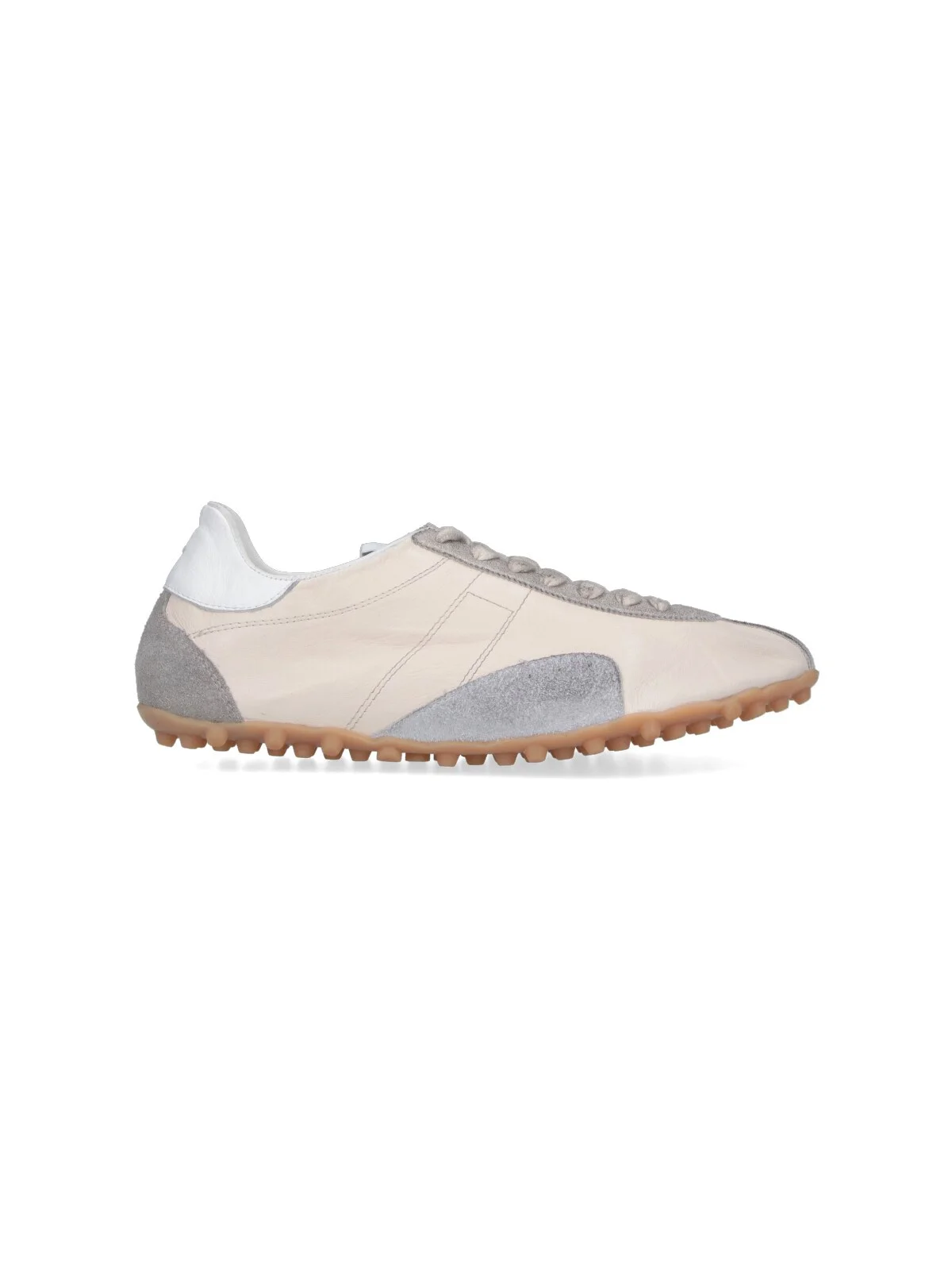 MAISON MARGIELA 'SPRINTERS' SNEAKERS IN GOAT LEATHER AND CREAM FABRIC WITH ROUND TOE, LACE-UP CLOSURE, 'NUMERIC' LOGO TAG ON THE TONGUE, CONTRAST SUEDE TRIM, BACK STITCHING, TEXTURED RUBBER SOLE. PRODUCT INFO PRODUCT CODE S57WS0515 P7383HB293 COMPOSITION: 100% GOAT LEATHER MADE IN: ITALY - SOLE: 100% RUBBER