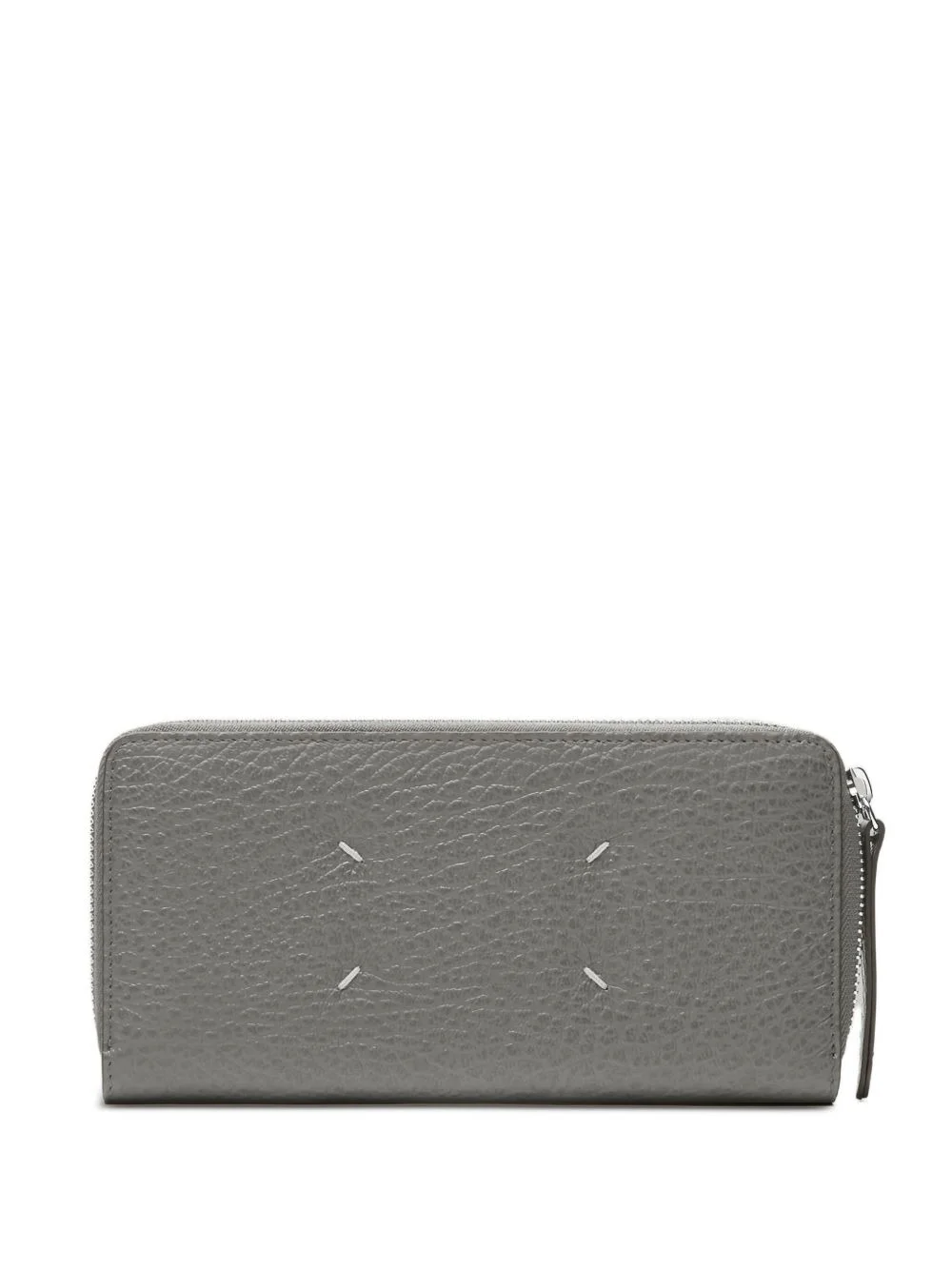 stitched-leather zip-around wallet Highlights - Grey - Grainy leather - Zip-around fastening - Internal-zipped coin purse - Card holders - Four-stitches detail Made in Italy Composition Calf Leather 100%
