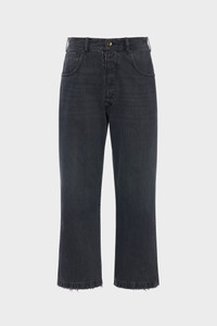 These straight-leg jeans combine a relaxed, cropped leg and subtle flare with a raw-cut hem for an undone finish. The back buckle detail recalls workwear tailoring, while the memory of the jacron label highlights the Maison’s approach to absence as design. At the back, the Maison’s signature four stitches appear; the opposite of a label. Product Details Item ID S50LA0245S30842963 Primary fabric: 100% cotton 14 oz. denim Pocket lining: 65% polyester 35% cotton Full-length wide-leg fit Frayed raw-cut hem Five-pocket styling Belt with rear adjustable buckle Button and zip closure at front Four stitches at the back Made in Italy