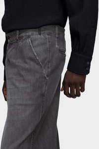 These straight-leg jeans are treated with the Maison’s sun faded technique, shifting grey tones from dark to light for a lived-in effect. Pleats sharpen the front, lending structure against the softened denim. An everyday form is elevated through treatment and proportion. At the back, the Maison’s signature four stitches appear; the opposite of a label. Product Details Item ID S50KA0719M30048961 Primary fabric: 100% cotton 8 oz. black denim Pocket lining: 65% polyester 35% cotton Full-length wide-leg fit Zip and button closure at the front Four stitches at the back Made in Italy
