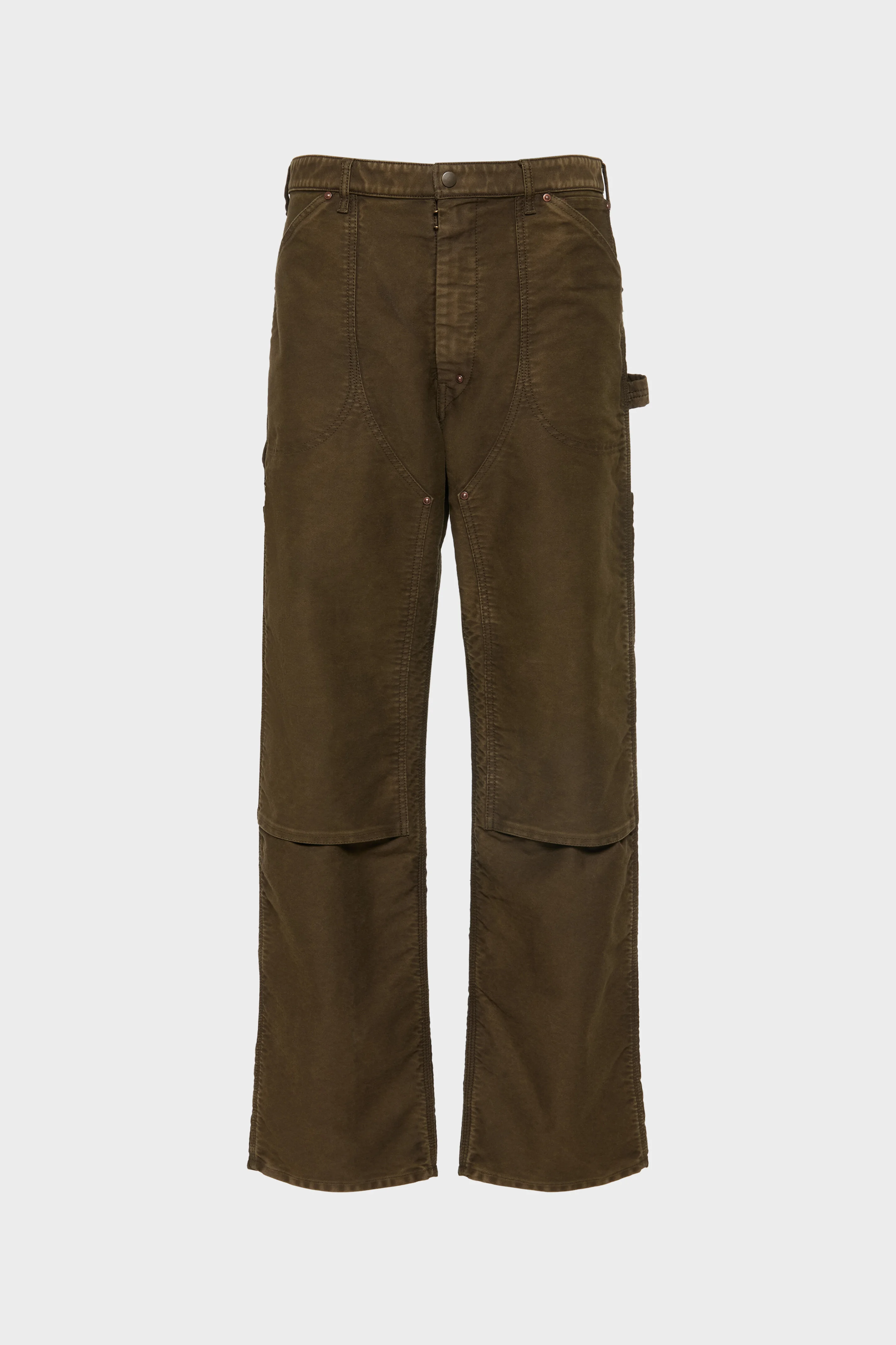 Cut in worker's moleskin with a straight leg and curved front panels, these trousers channel a utilitarian sensibility grounded in craftsmanship. A side tool loop and knee reinforcements heighten their purpose-driven design, aligning with the Maison’s reinterpretation of workwear classics. Maison Margiela’s signature, the four stitches, appear at the back; the opposite of a label. Product Details Item ID S50KA0691S76543963 Primary Fabric: 100% Cotton Pocket Lining: 100% Cotton Cotton trousers with reinforced knee panels and utility loop Curved front seams Angled side pockets Four stitches at the back Made in Italy