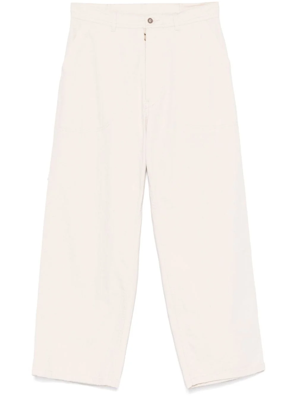 straight-leg trousers Highlights - Light beige - Button fly fastening - Belt loops - Two side slit pockets - Two rear patch pockets Made in Italy Composition Cotton 100% SIZE & FIT Model measurements Height 6 ft 2 in(1.87 m) Bust/Chest 37.79 in(96 cm) Hips 37.79 in(96 cm) Waist 30.31 in(77 cm) FittingInformation Designed for a relaxed straight leg, allowing a comfortable and loose fit over the leg Made from a midweight non-stretch fabric