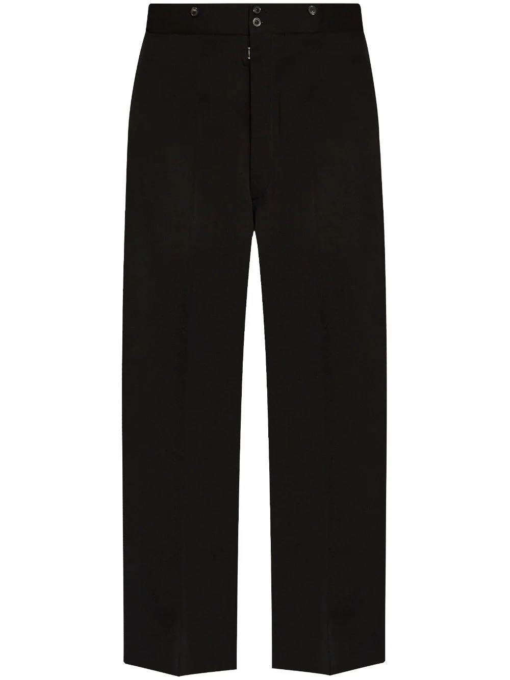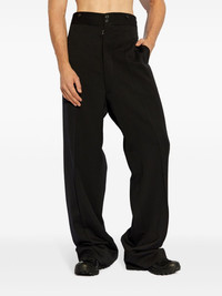 four-stitch wool trousers Highlights - Black - Wool - Tailored design - Signature four-stitch logo - Pressed crease - High-waisted - Concealed fly and button fastening - Belt loops - Wide leg - Two side slit pockets - Rear button-fastening jetted pocket Made in Italy Composition Wool 100% Washing instructions Read Manufacturer Guidelines