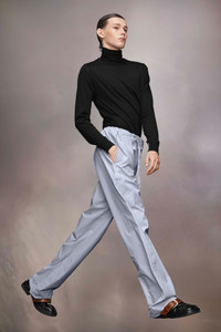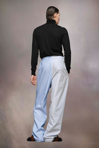 Crafted from cotton with contrast stripe patterns, the trousers form a wide-leg silhouette with a drawstring waist. Maison Margiela's signature, the Four stitches, appear at the back; the opposite of a label. Product Details Item ID S50KA0656MTN031961 Composition: 100% cotton Cotton classic stripe trousers Regular waist Wide leg Drawstring closure Four stitches at the back Made in Italy Model is 6'1" tall and wears a size 46.
