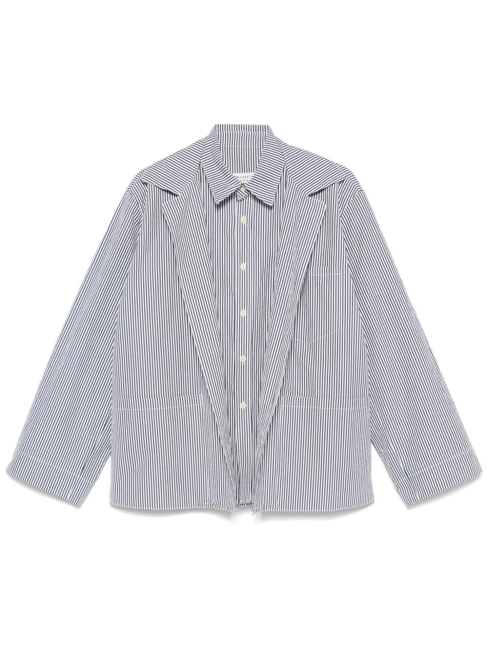 striped jacket Highlights - Navy blue - Front button fastening - Four front patch pockets - Split cuffs - Layered design Made in Italy Composition Outer: Cotton 100% Lining: Cotton 100% SIZE & FIT Model measurements Height 6 ft 2 in(1.87 m) Bust/Chest 37.79 in(96 cm) Hips 37.79 in(96 cm) Waist 30.31 in(77 cm) FittingInformation Designed to be unstructured, offering a loose fit throughout Made from a midweight non-stretch fabric