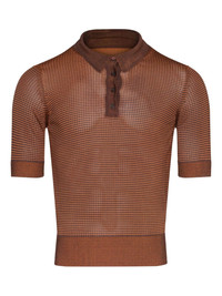 striped polo shirt Highlights - Brown - Striped - Button fastening - Short sleeves - Ribbed hem - Ribbed cuffs Made in Italy Composition Viscose 100% Washing instructions Read Manufacturer Guidelines
