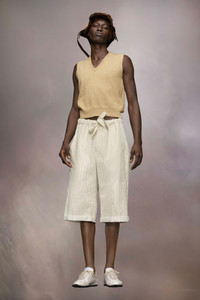 In a cotton blend, the pyjama-inspired shorts come in a classic striped print and feature a relaxed fit with large turn-ups and an adjustable waist with a tie, both decorative and functional. They are complete with side and back pockets. Maison Margiela's signature, the four stitches, appear at the back; the opposite of a label. Product Details Item ID S50MU0080S76507001F Primary Fabric: 80% Cotton 20% Polyester Pocket Lining: 80% Cotton 20% Polyester Cotton poly shorts Regular waist with drawstring Knee length Side pockets Four stitches at the back Made in Italy Model is 185 cm tall and wears a size 46.