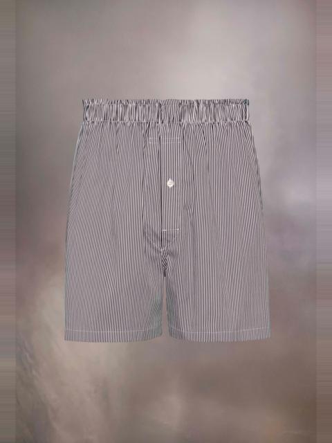 In classic striped cotton, the shorts feature an elasticated waist for a casual aesthetic. Maison Margiela’s signature, the Four stitches, appear at the back; the opposite of a label. Product Details Item ID S50MU0071STZ132961 Primary fabric: 100% cotton Classic striped cotton shorts Elasticated waistband Button closure at the front Four stitches at the back Made in Italy Model is 187cm tall and wears a size S.