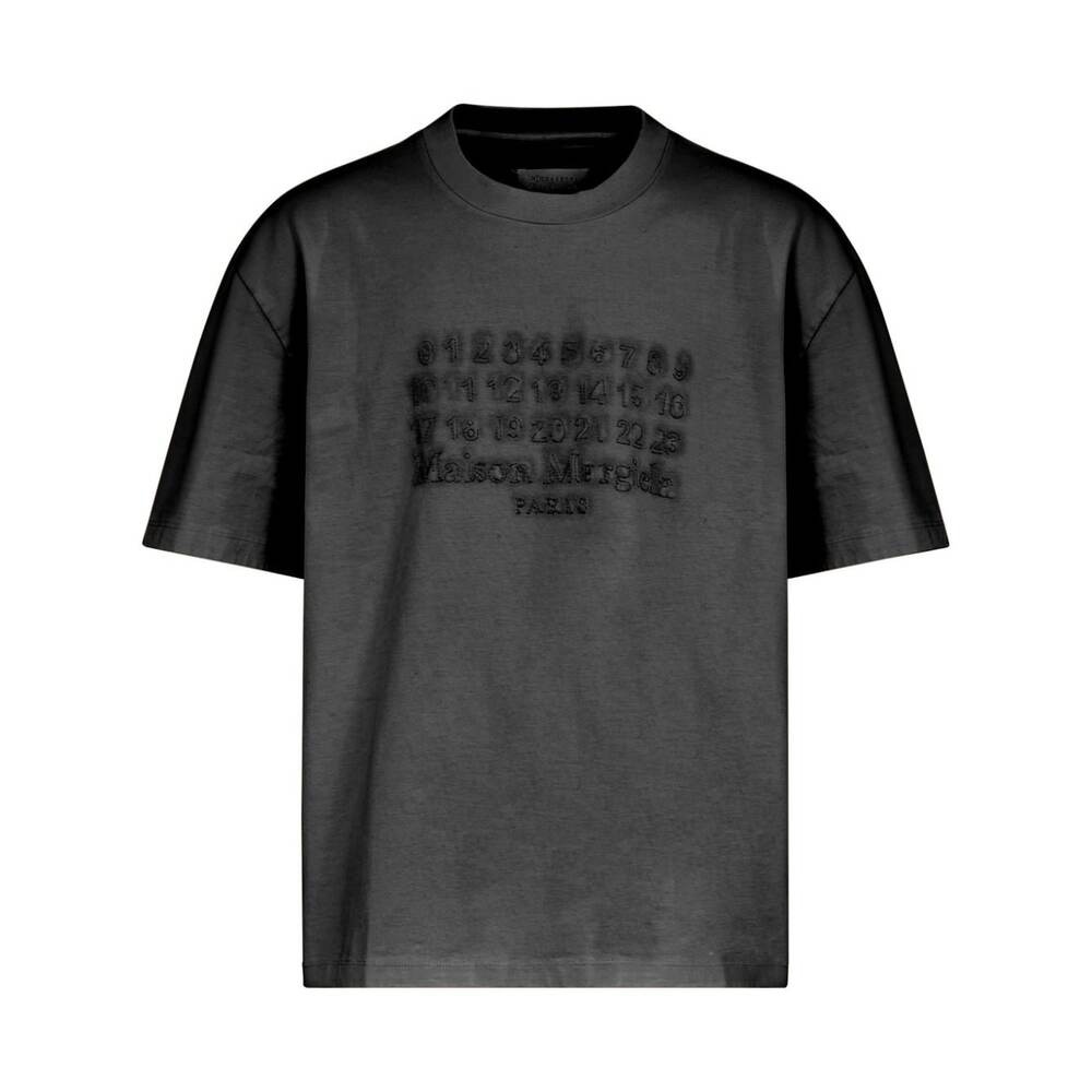 Charcoal grey cotton embroidered logo to the front signature numbers motif crew neck short sleeves straight hem.