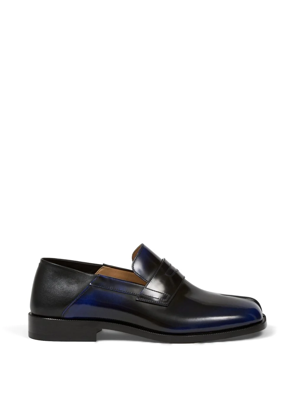 Tabi babouche loafers Highlights - Blue and black - Split toe - Slip-on style - Penny bar - Flat sole Made in Italy Composition Outer: Calf Leather 100% Lining: Calf Leather 100% Sole: Calf Leather 100%