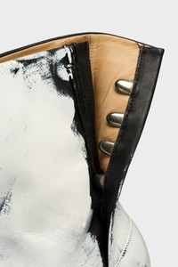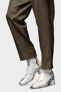 Featuring the Maison's Bianchetto treatment, which wears with age for an evolving look, these low-heeled ankle boots are designed with the Tabi split-toe, inspired by the traditional 15th century Japanese sock bearing the same name – launched for the Maison's debut collection in 1989. It captures the avant-garde and insubordinate spirit of the Maison and exists as a heritage classic, continually explored through each collection. 6cm heel. Product Details Item ID S57WU0132P4128H8680 Upper: 100% Calf leather Lining: 100% Lamb leather Inside: 100% Lamb leather Sole: 100% Calf leather Contrast: 100% Rubber Heel height: 7 cm/2,7 in Cylindrical heel Tabi split toe Handmade treatment White stitching at the back Hook closure Brand logo on the insole Internal logo stamping Made in Italy A digital certificate provided by the Aura Blockchain Consortium guarantees the authenticity of this product. Discover more on auraluxuryblockchain.com/#about The model is 185cm tall. Model wears size 45.