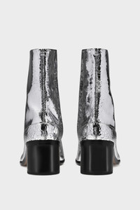 The Tabi boots in the broken mirror finish feature the Maison's iconic Tabi split-toe shape and contrast cylindrical heel. Tabi styles are inspired by the traditional 15th century Japanese sock bearing the same name. It captures the avant-garde and insubordinate spirit of the Maison and exists as a heritage classic, continually explored through each collection. 6cm heel. Product Details Item ID S37WU0431P5016T9002 Upper: 100% Calf leather Lining: 100% Lamb leather Sole: 100% Calf leather Contrast: 100% Rubber Heel height: 6 cm/2,3 in Cylindrical heel Tabi split toe Broken mirror effect White stitching at the back Hook closure Brand logo on the insole Internal logo stamping Made in Italy A digital certificate provided by the Aura Blockchain Consortium guarantees the authenticity of this product. Discover more on auraluxuryblockchain.com/#about